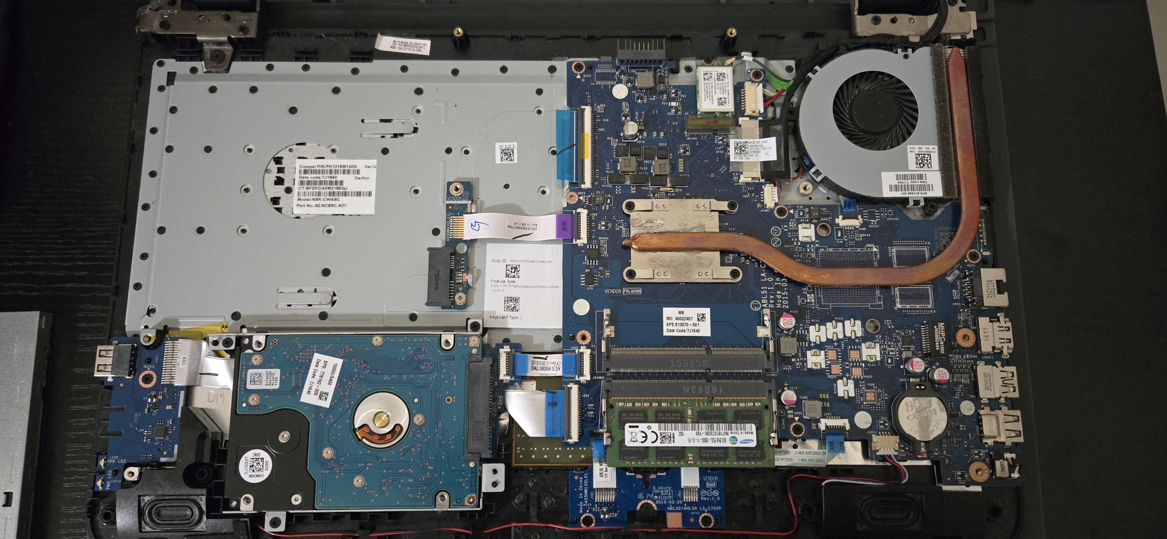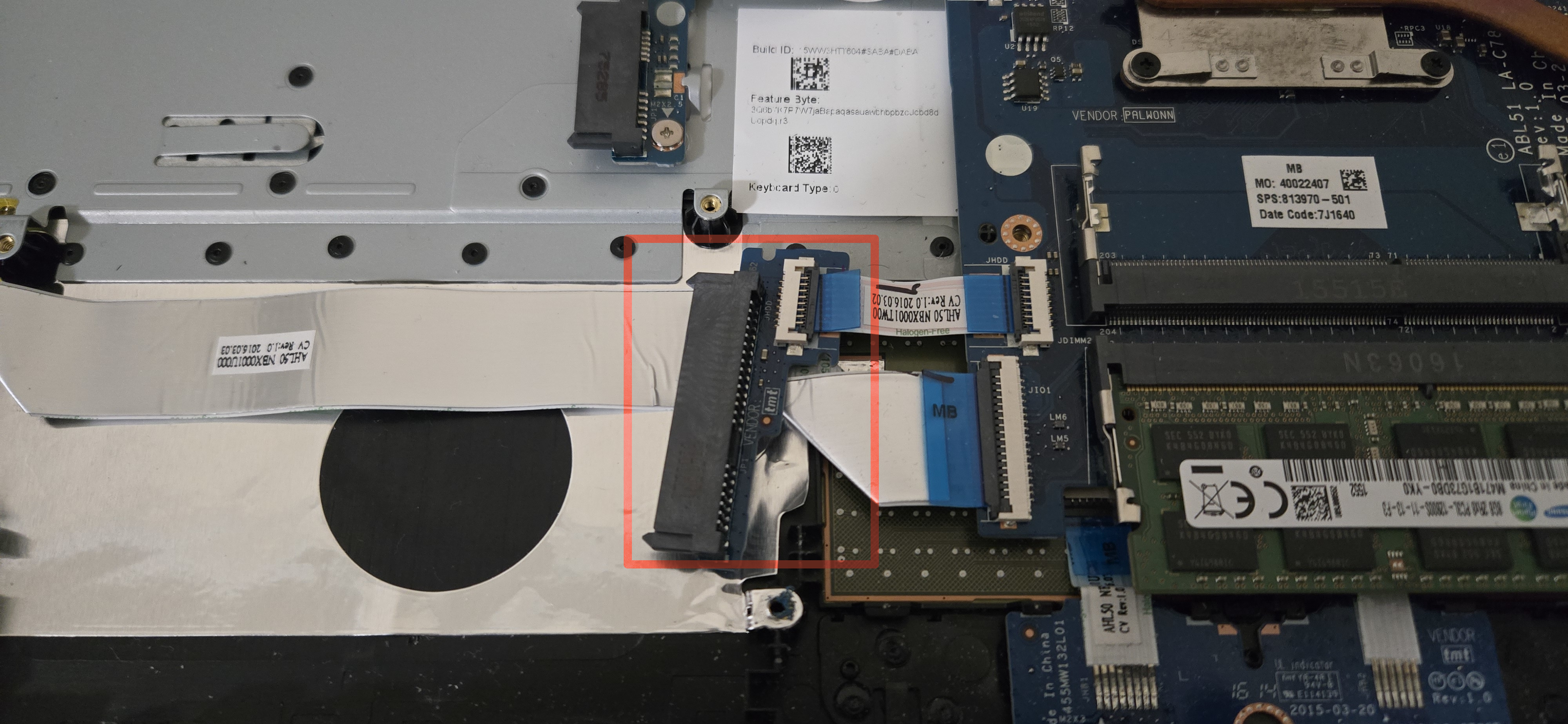 - Identify the HDD and the SATA cable that connects the HDD to the motherboard.